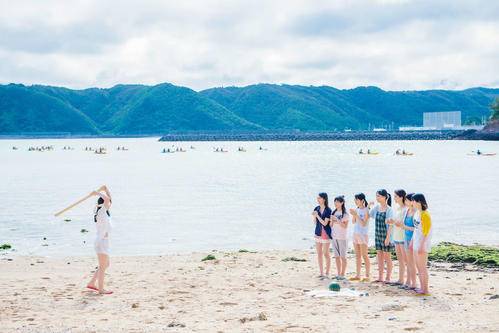 青空の下でプールに入った1枚や、海辺でスイカ割りやキャンプファイアに挑戦したり、メンバーが集合して笑顔をはじけさせたカットなどを収録。中高生のメンバーが朝の沖縄を制服姿で散歩する姿や、一部年上メンバーがランジェリー姿を初披露したショットも掲載される予定だ。