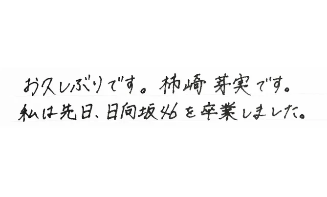 先日日向坂46を卒業された柿崎芽実さんから、皆さんへの、そしてメンバーへの想いがこもった便せん2枚にわたる最後の手紙をいただき、写真集に掲載させていただきました✉️