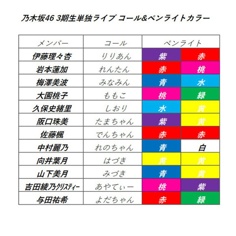【乃木坂3期生】LIVEでのコール&ペンライトカラーがこちら!