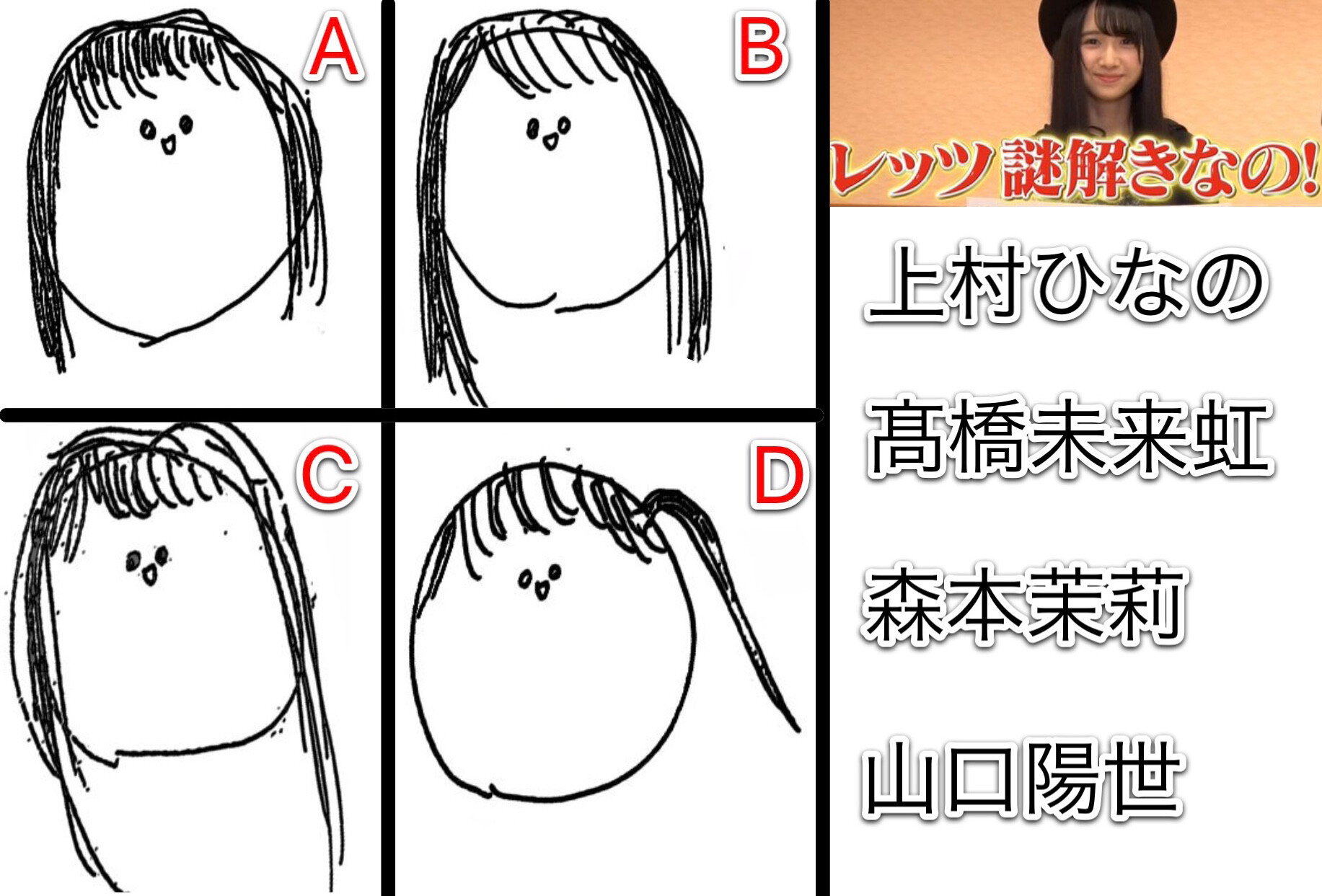 Aみくに、Bひなの、Cまりぃ、Dぱるよか?