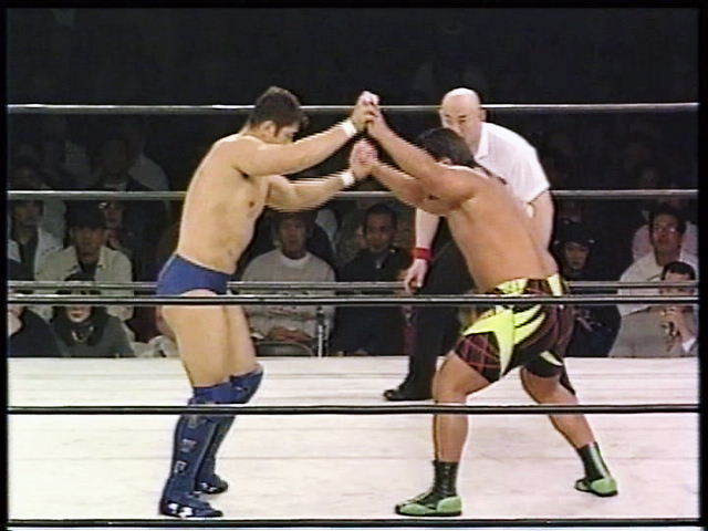 胸合わせてからのヘッドロックからのロープにふってからのショルダースルーだな
