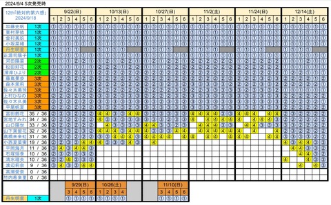 4次完売の谷があるな。すーじーにんぱるすみはるはる惜しかっただけに残念。